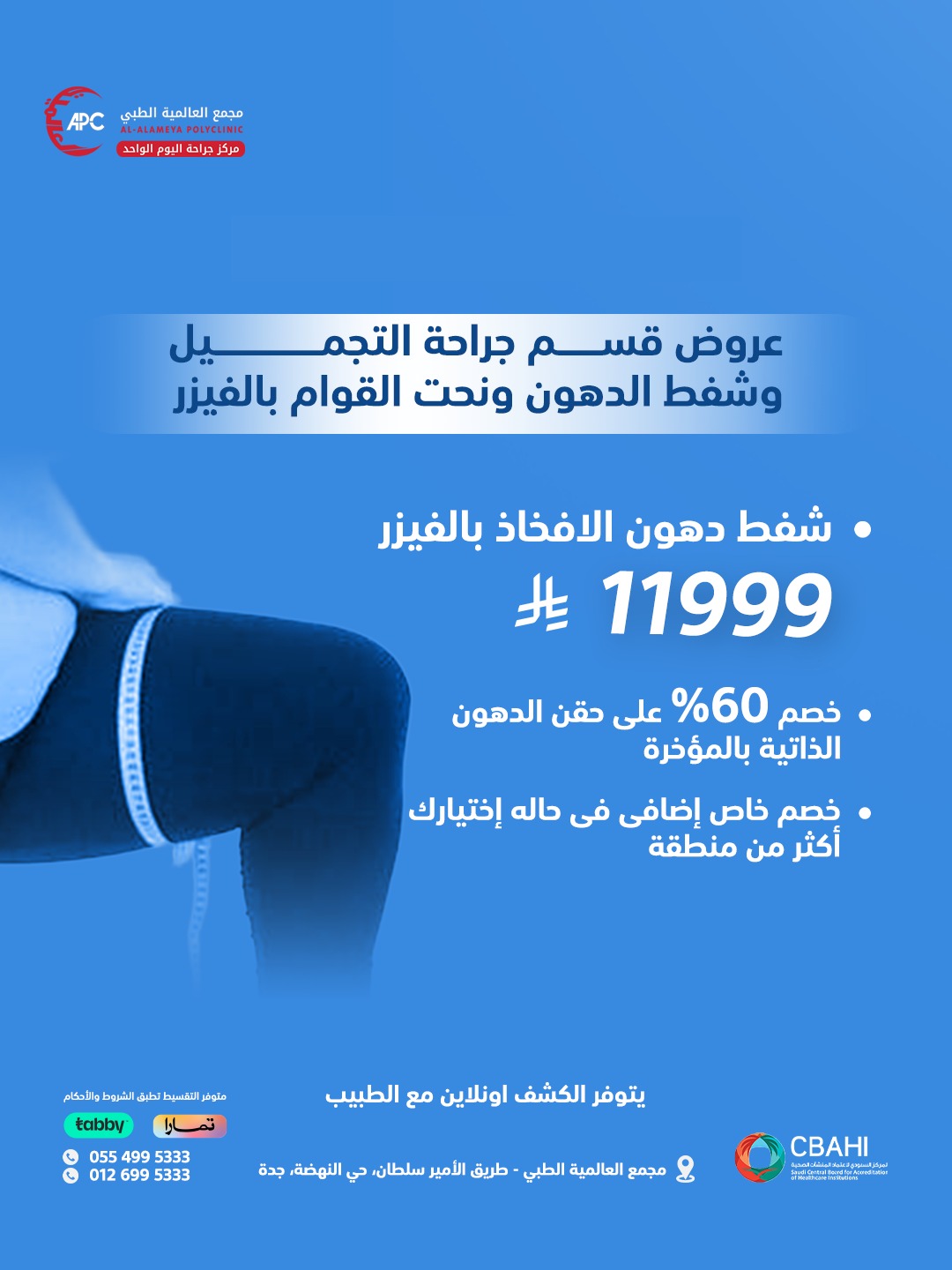 شفط الدهون منطقه الفخذين 11999 ريال ويحدد الاستفادة من العرض الطبيب بعد معاينة الحاله