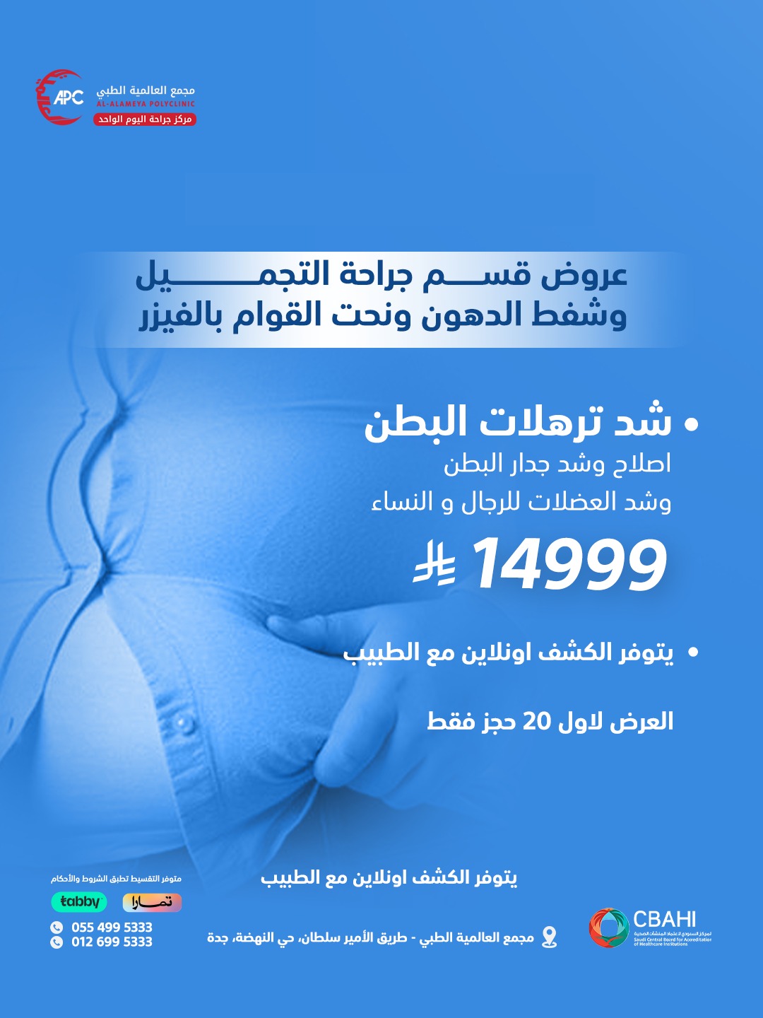 شفط الدهون لمنطقة البطن 8999 ريال ويحدد الاستفادة من العرض الطبيب بعد معاينه الحاله