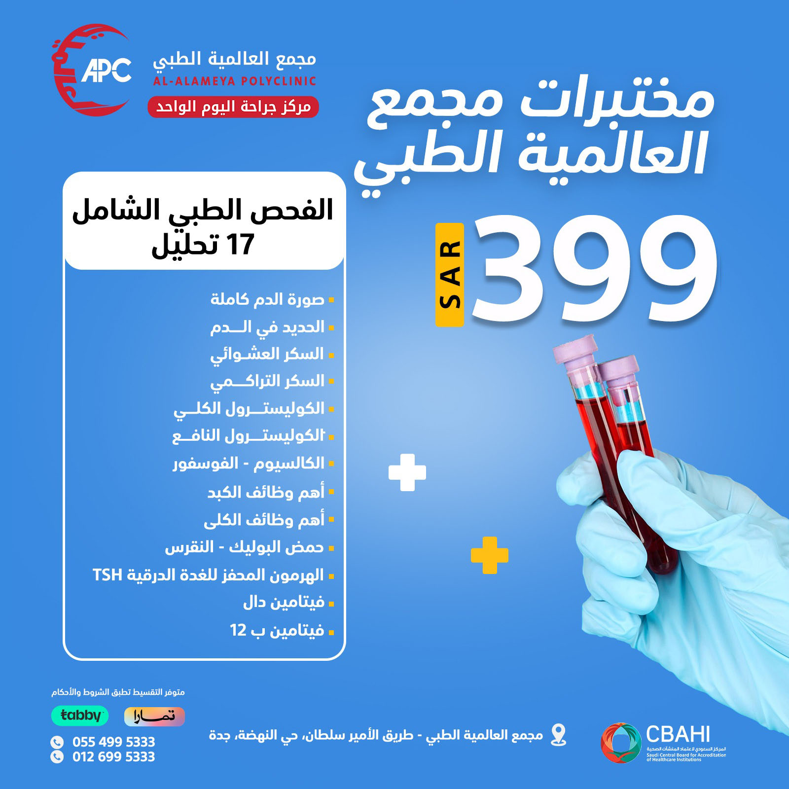 الفحص الطبى الشامل 17 تحليل + فيتامين دال + فيتامين ب12 بـ 399 ريال