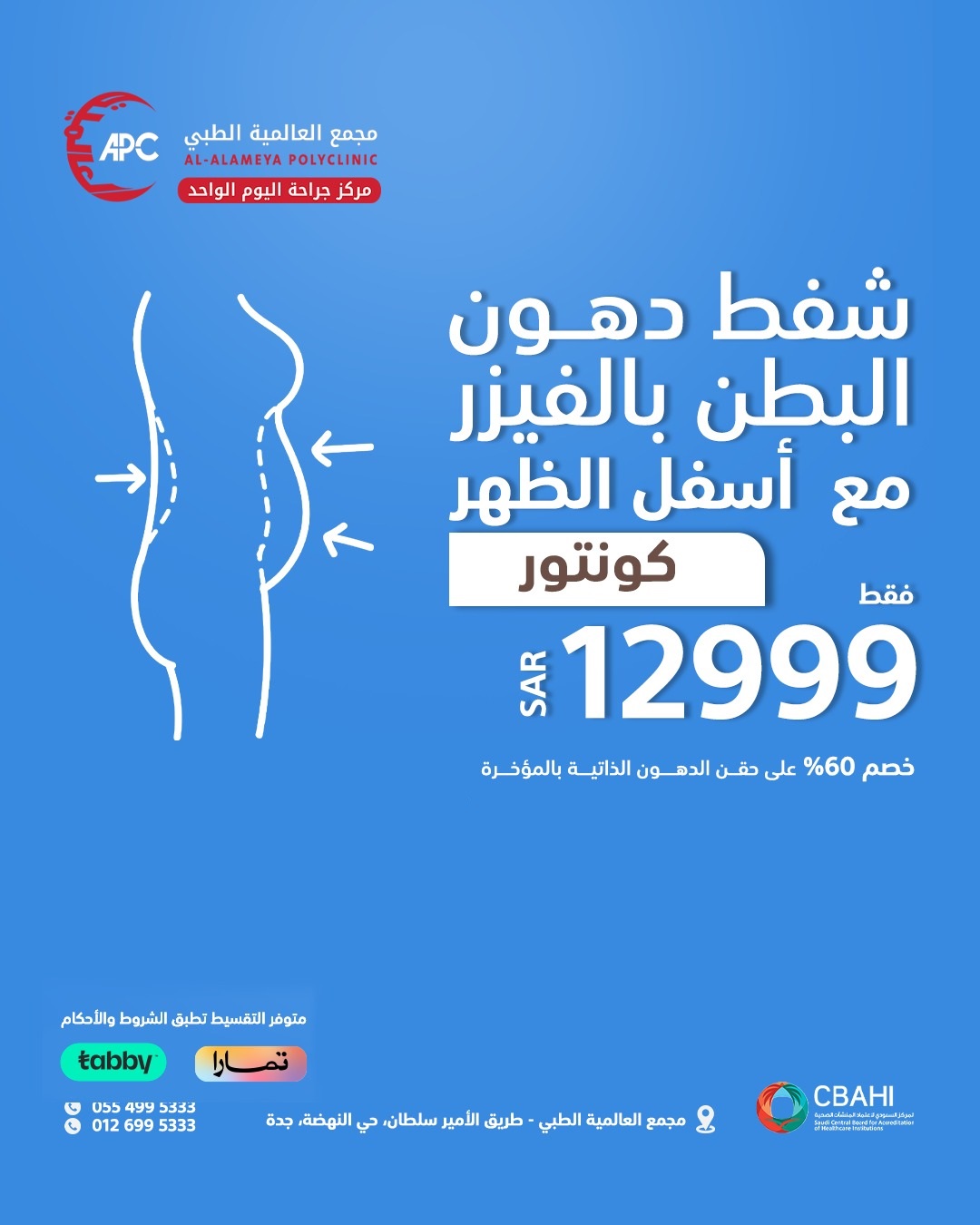شفط دهون البطن بالفيزر مع أسفل الظهر (كونـتور ) 12999 ريال