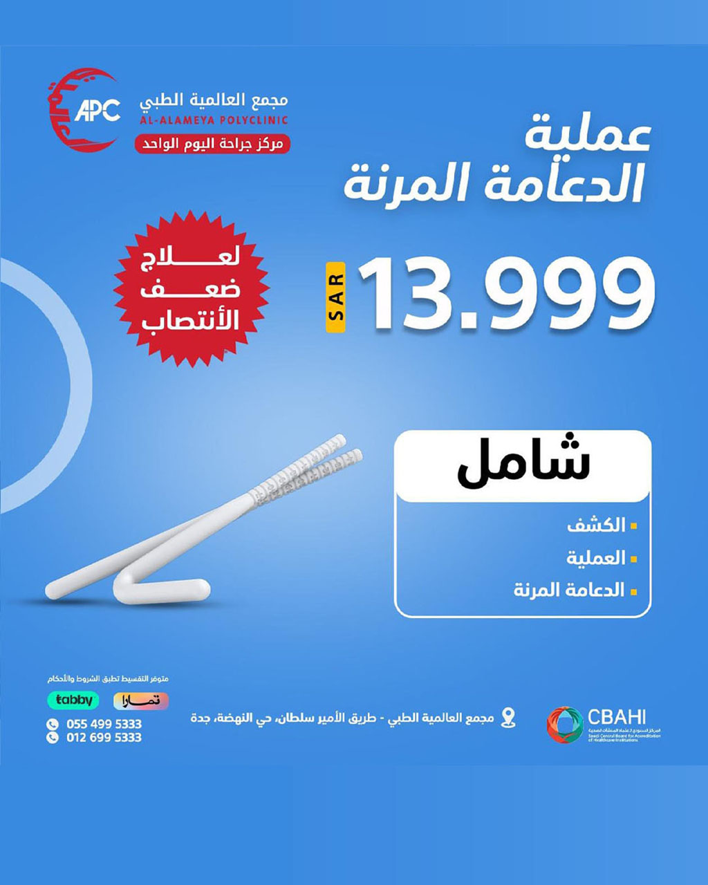 عملية الدعامه المرنه 13999 ريال - شامل الكشف والعملية و جهاز الدعامه المرنه